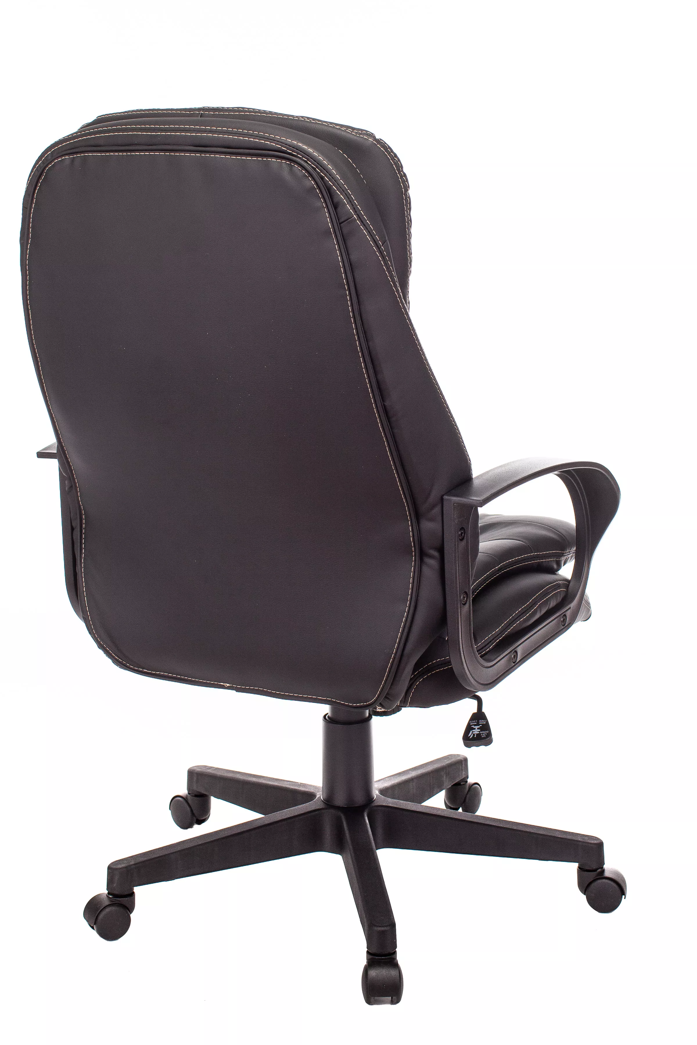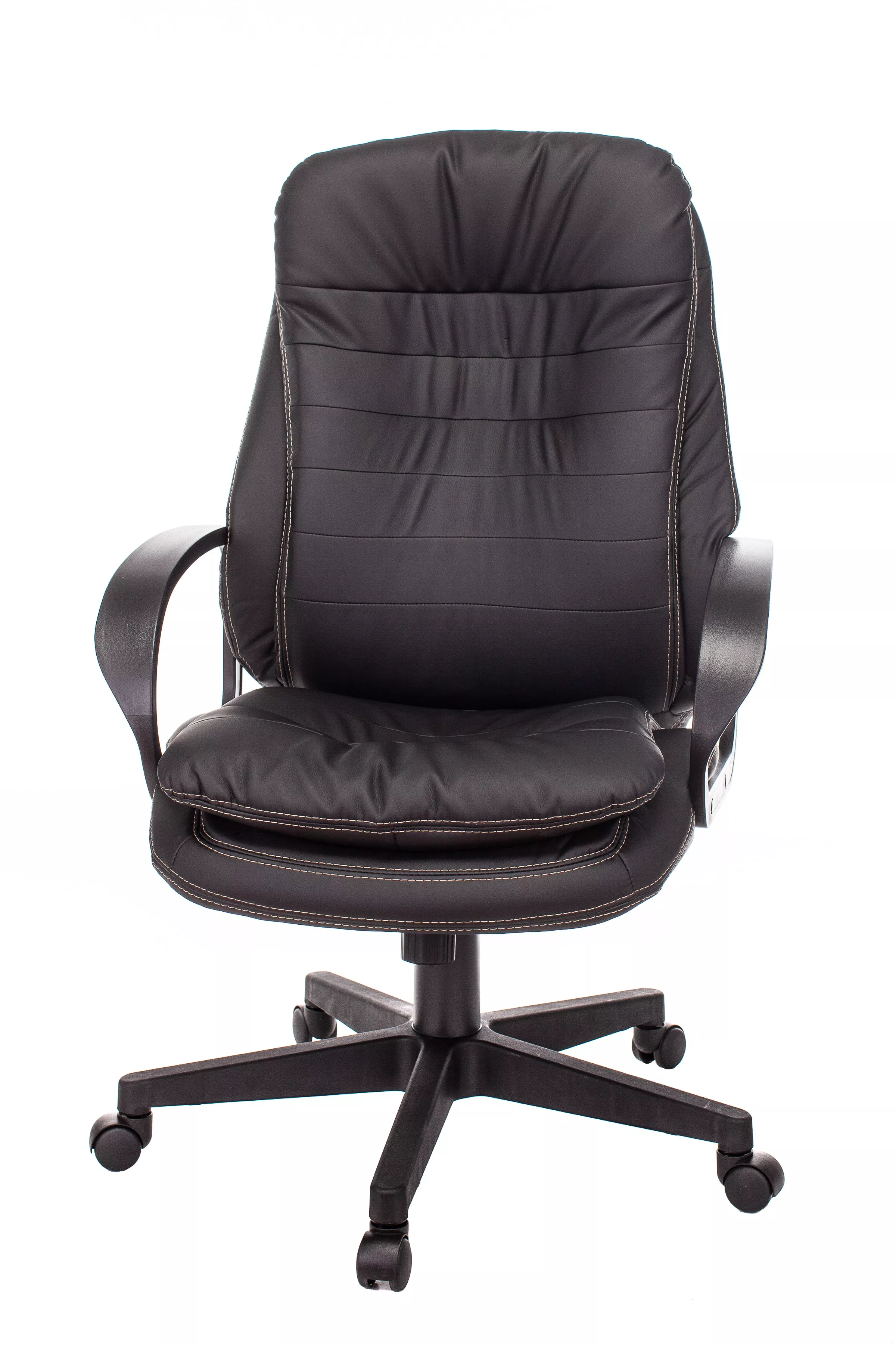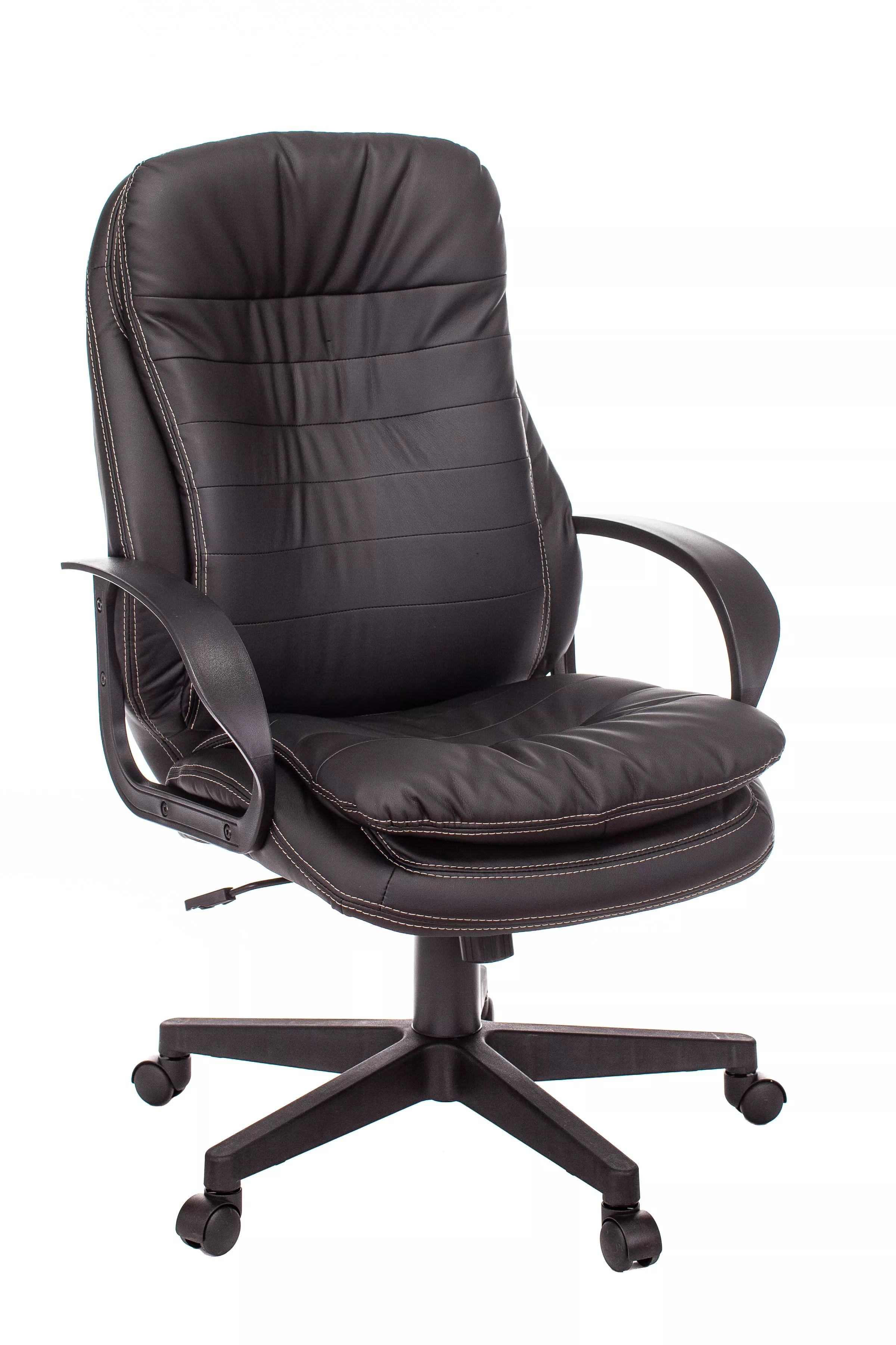 Обивка кресла выполнена из высококачественной экокожи черного цвета, которая не только стильно смотрится, но и легко чистится. Спинка кресла отделена от сиденья, что позволяет обеспечить лучшую вентиляцию и комфорт при длительном сидении. Высота кресла варьируется от 1065 мм до 765 мм с подлокотниками, а высота сиденья составляет 495 мм. Ширина сиденья — 565 мм, а глубина — 460 мм, что обеспечивает достаточное пространство для комфортного размещения.