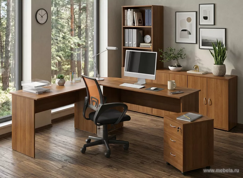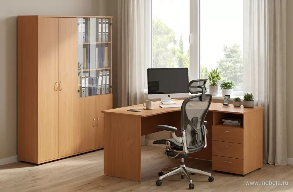 Аскетичность линий и природные мотивы в цветовой гамме – вот главные отличительные особенности мебели для офиса из гарнитура Эко. Внешняя простота не сказывается отрицательно на функциональных возможностях. Модульная структура элементов позволяет собирать из них рабочие места любой сложности.