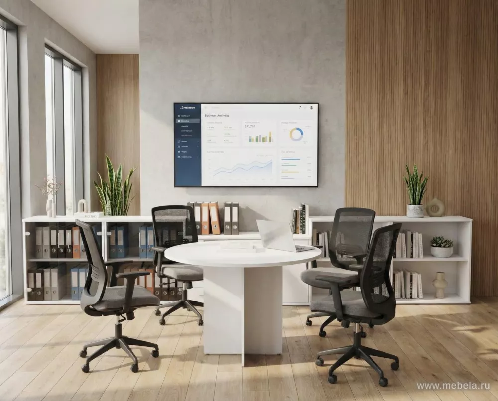 Предельно расширить пространство даже в самом тесном офисе поможет мебель Рива (Riva) White. Воздушный дизайн достигнут за счет кристально белого цвета ЛДСП панелей и предельно простой конструкции мебели. Ни одного лишнего элемента в конструкции не ограничивает высокую функциональность мебели Riva New.